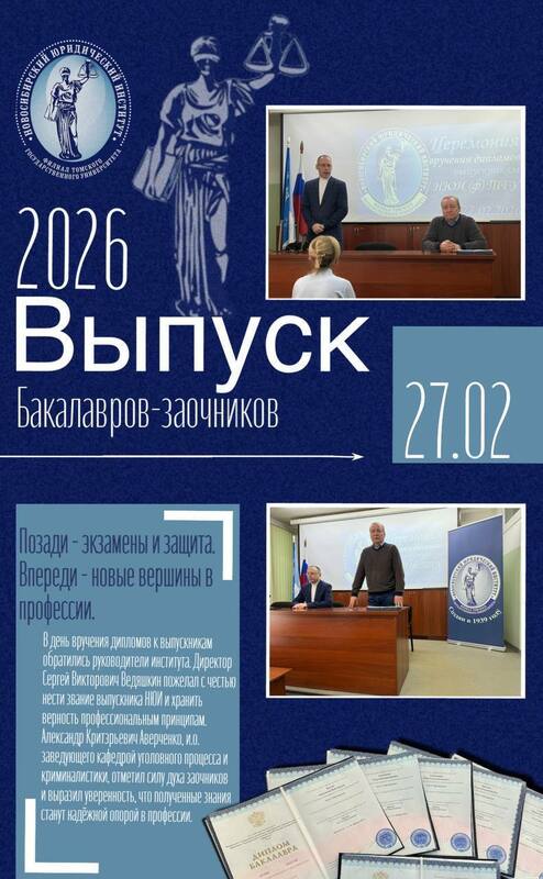 В стенах института состоялась торжественная церемония вручения дипломов бакалаврам-заочникам, для которых путь в юриспруденцию стал взвешенным решением и вторым высшим образованием.